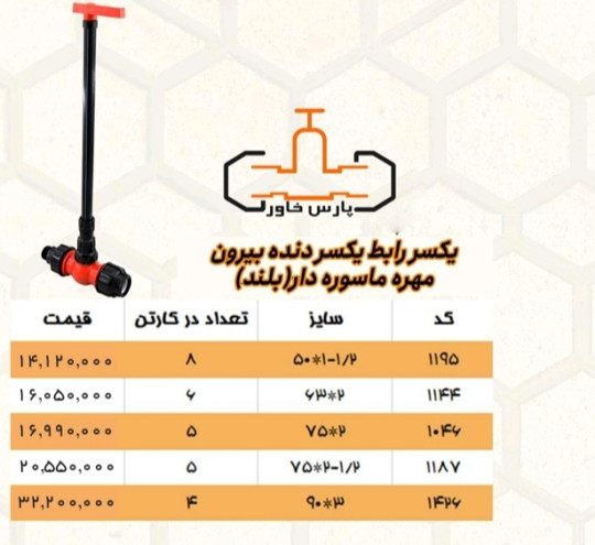 شیر یکسر رابط یکسر دنده بیرون مهره ماسوره دار (بلند)