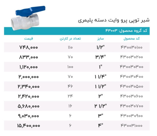 نظرات کاربران به : شیر توپی پرو وایت دسته پلیمری